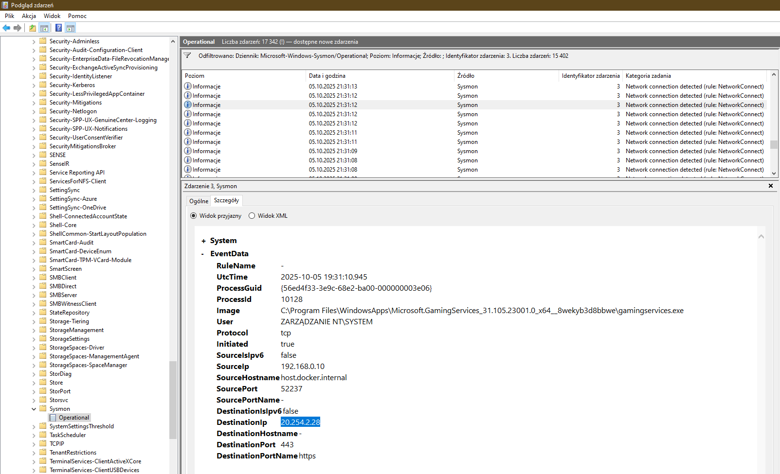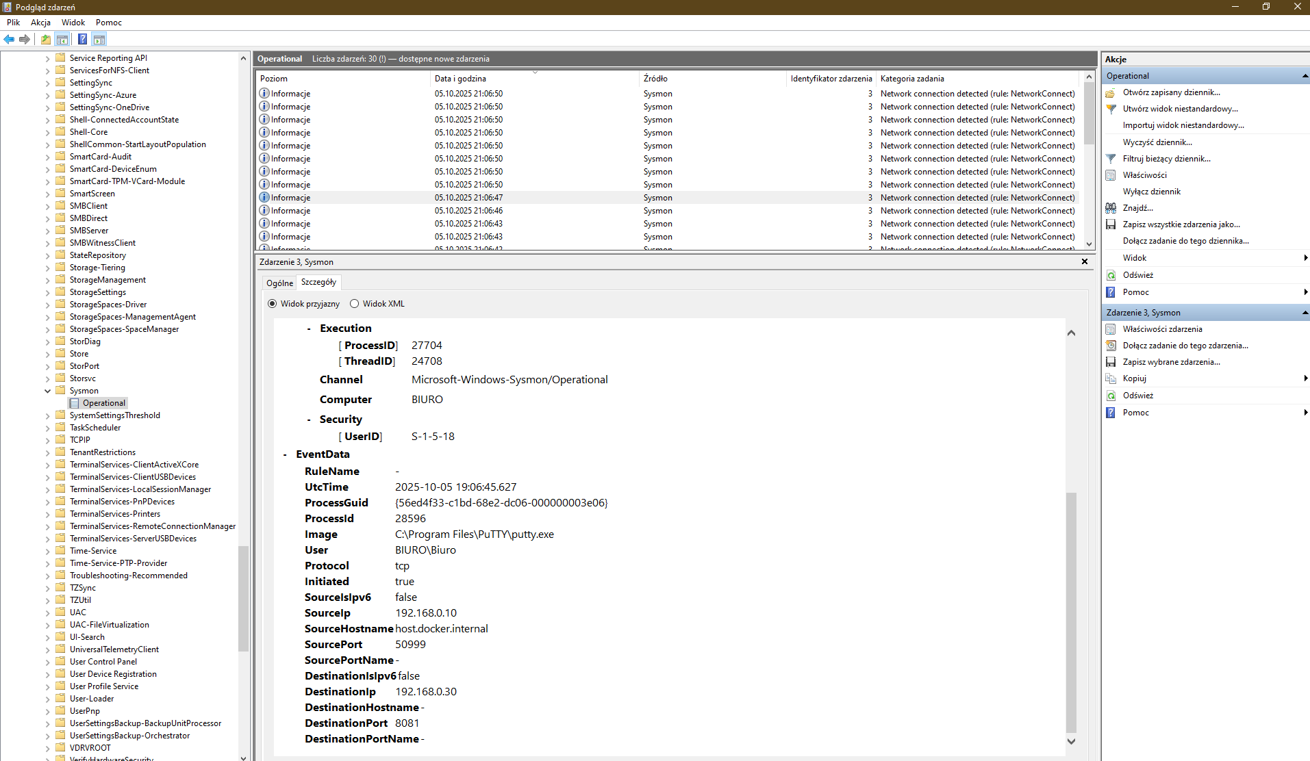 Dziennik aplikacji i usług -> Microsoft -> Windows ->Sysmon ->Operational