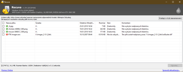 Ze względu na to, że nośnik był wcześniej formatowany – narzędzie nie znalazło plików, które mogłyby być odzyskane.